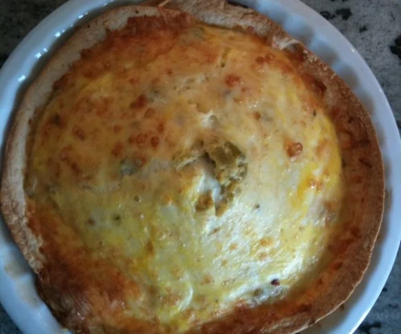 - Cook for 30 – 45 minutes, until the tortilla crust is browned and the egg mixture is golden and set.